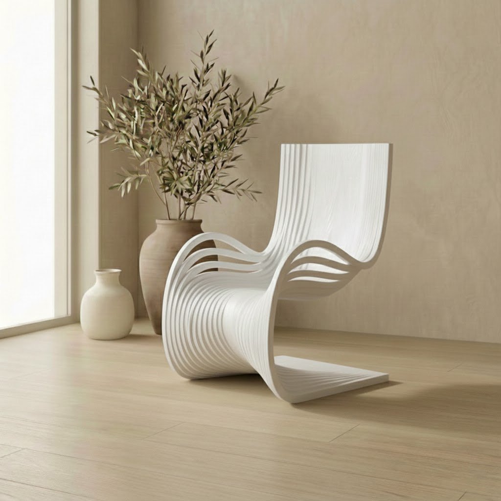 The Milan Chair redefines the boundary between furniture and art. Inspired by the fluidity of sound waves and organic motion, this piece utilizes advanced parametric design techniques to create a silhouette that appears to be in constant motion.